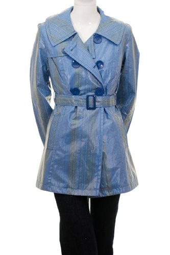 CHECK BEST DEALS COMPARE PRICES & SPECIAL DISCOUNT ABOUT Tulle Double Breasted Belted Dot Pattern Printed Nylon PU Lined Rain Trench Coat Blue Medium